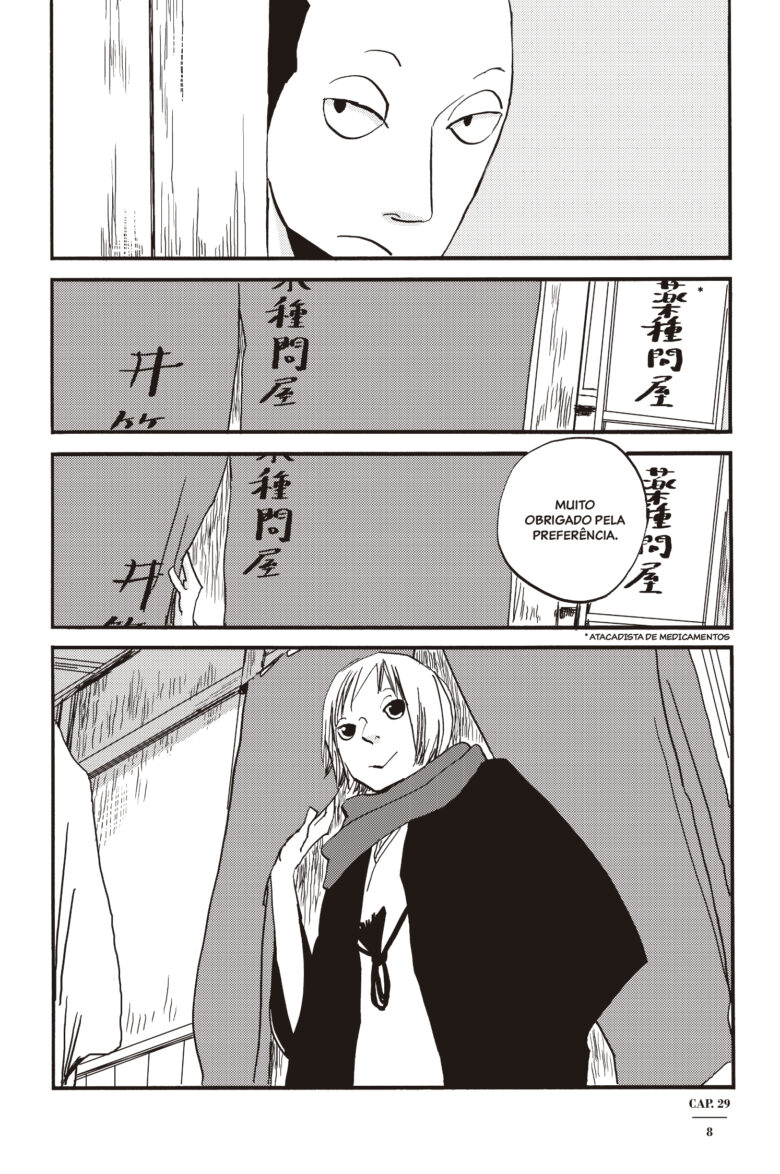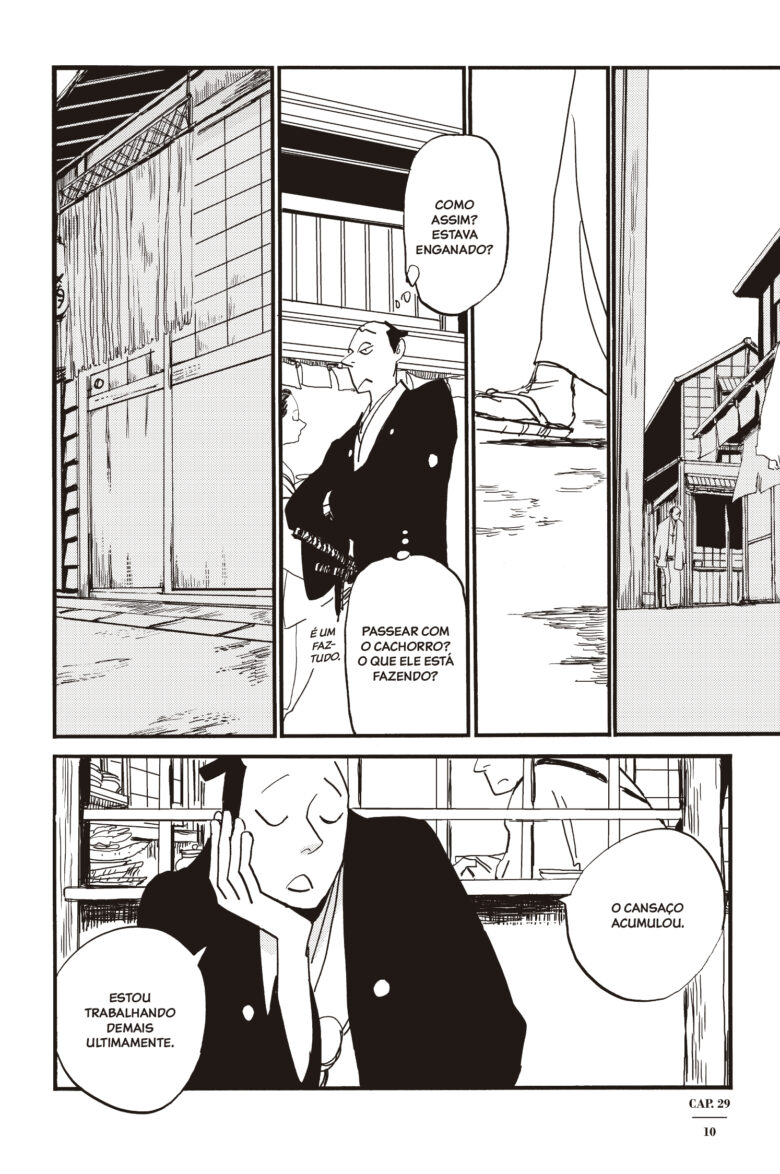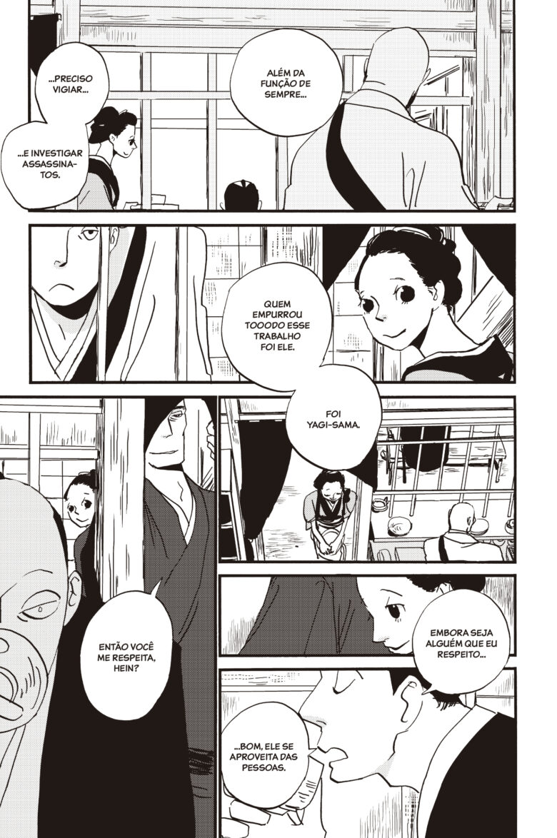 Masanosuke segue dividido entre sua natureza gentil e o mundo ambíguo em que passou a viver, enquanto sua relação com Yaichi se torna cada vez mais complexa e carregada de nuances. Fragmentos do passado do grupo vêm à tona, revelando antigas feridas, motivações ocultas e vínculos frágeis. Entre o silêncio e diálogos sutis, este volume reforça os temas centrais da série – solidão, culpa e a busca por um lugar ao qual se possa realmente pertencer.