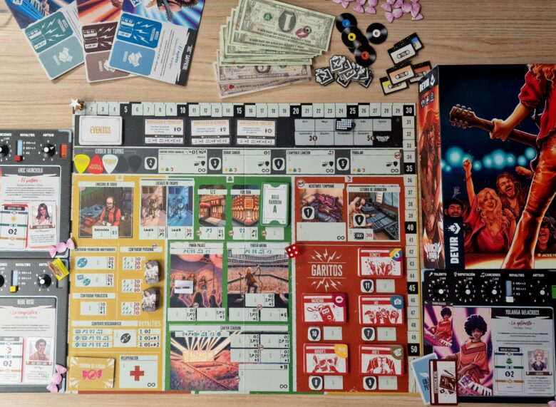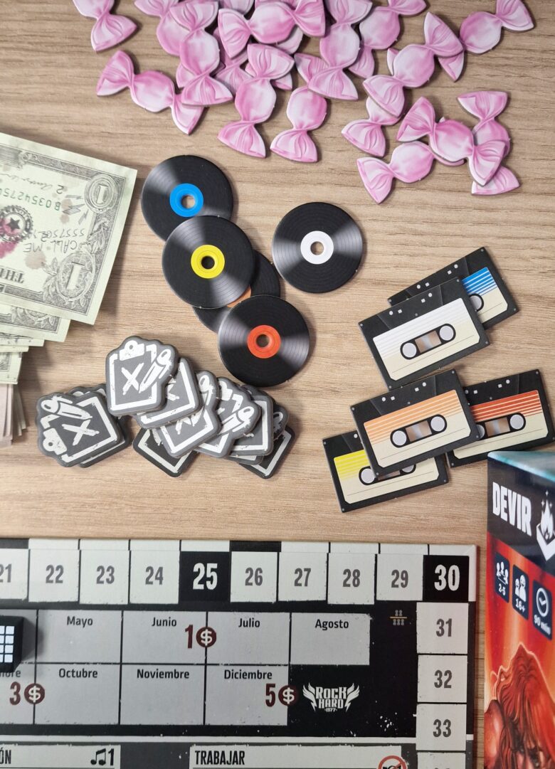 Cada jogador terá um empresário único que o ajudará a impulsionar sua carreira musical com uma habilidade específica. Claro, você terá que pagar pelos serviços dele se não quiser perder pontos de Fama. E às vezes um roqueiro precisa de uma ajudinha para superar um dia difícil… É por isso que os jogadores também podem consumir doces para aproveitar melhor o tempo e realizar mais ações. No entanto, exagerar nos doces pode causar um pico de açúcar que o deixará exausto para a próxima rodada.