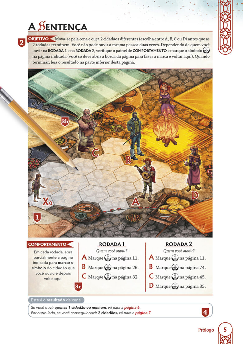 • Você também não precisa de dados (embora possa usá-los se quiser), pois as fontes de aleatoriedade controlada estão no próprio livro. À medida que avança na história e desbloqueia novos personagens, você precisará não apenas de sorte, mas também de memória, perspicácia e precisão para aprimorar seus ataques.